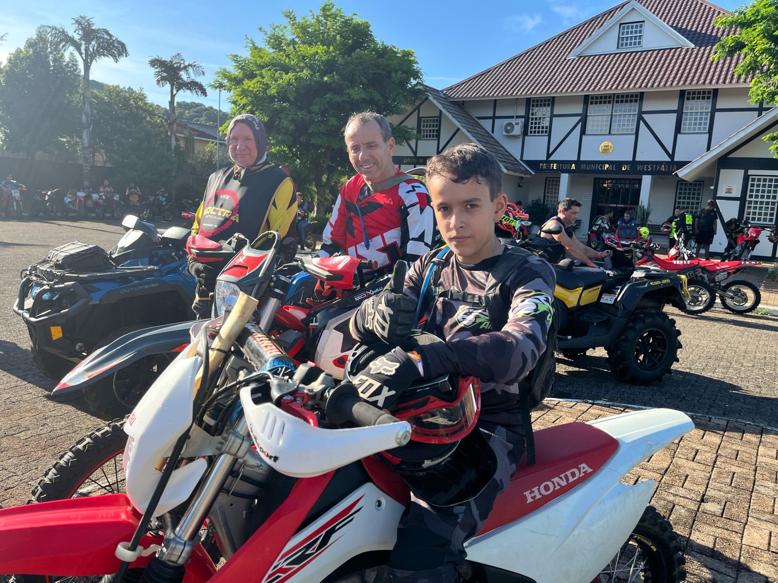 Entre os trilheiros, muitos pais e filhos se uniram para trilhar todas as aventuras de moto pelo evento organizado pelo Tatutrancado. Foi o caso do mecânico Luciano Ogliari, 45 anos, e o filho, Guilherme Ogliari, 11 anos, que vieram de Boqueirão do Leão, do outro lado do Vale do Taquari, para participar das trilhas. O menino participa de eventos de motos desde os 6 anos de idade.