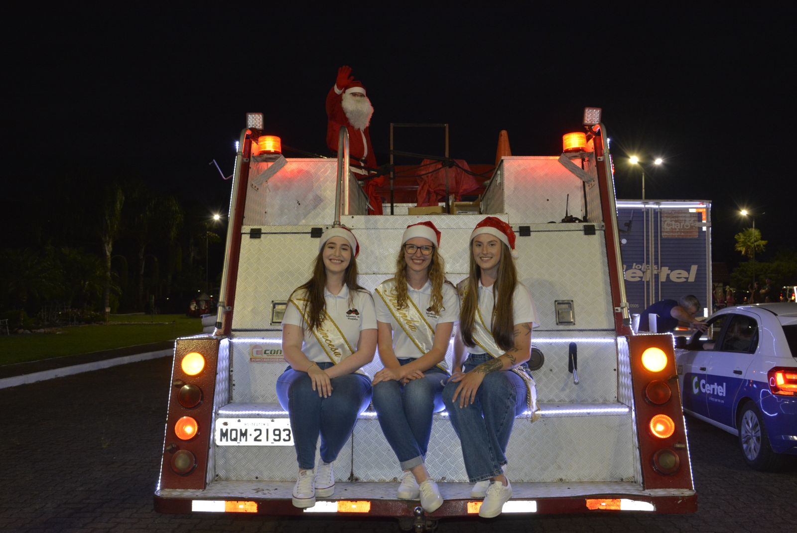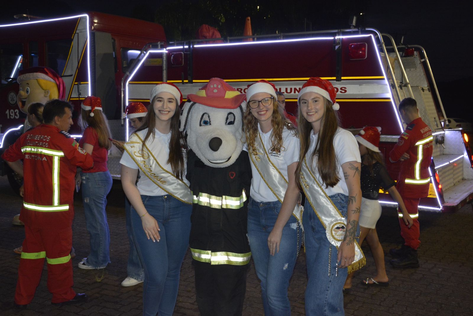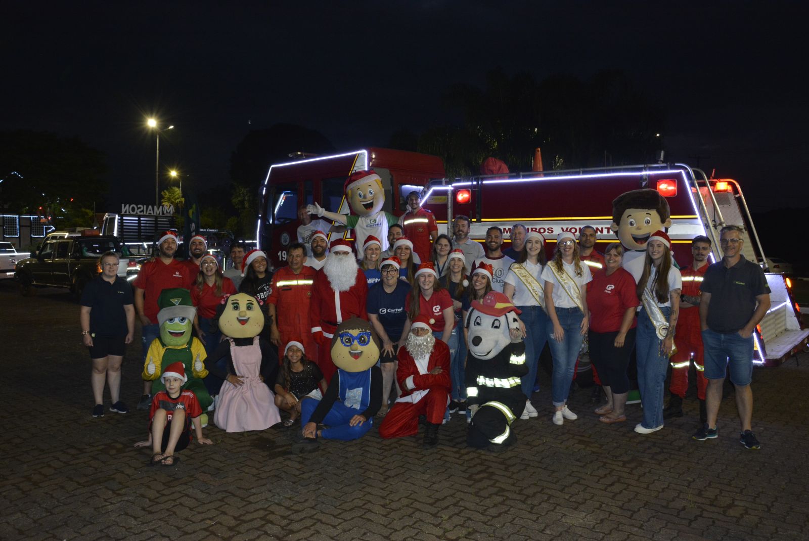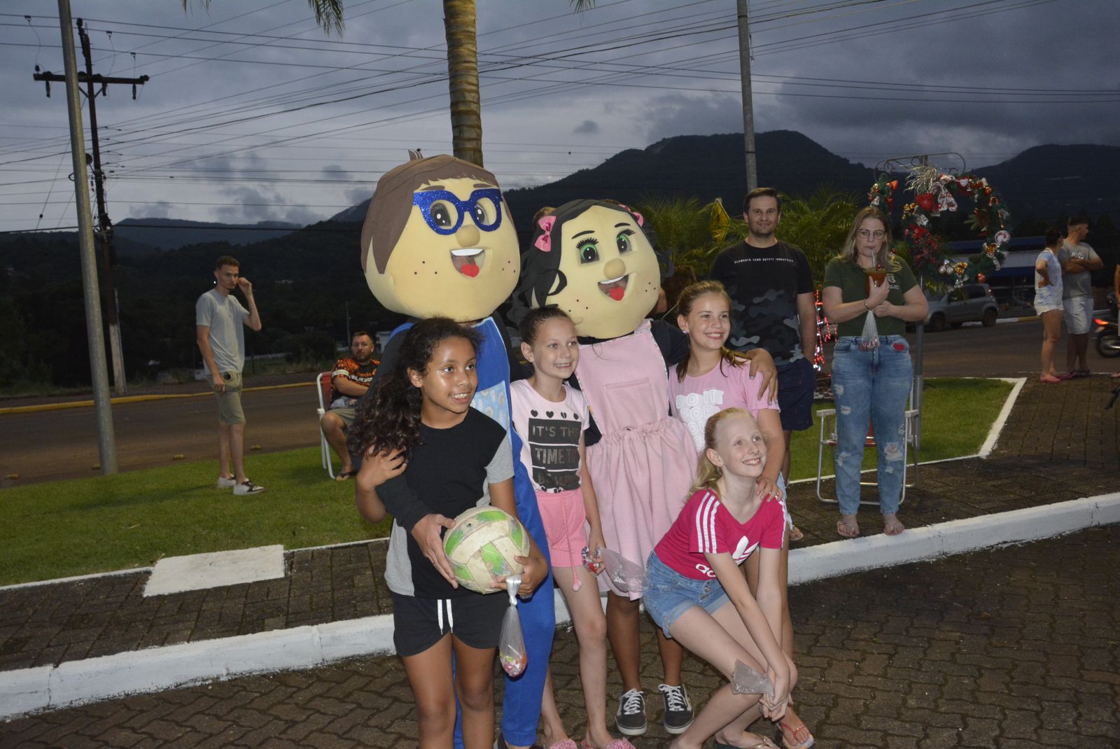 O ponto de parada foi em frente à Prefeitura Municipal, local que reuniu dezenas de famílias westfalianas. Além de abraçarem o Papai Noel e todos os mascotes que participaram da ação, as crianças ainda puderam conhecer, de perto, o caminhão do Corpo de Bombeiros Voluntários de Teutônia.
