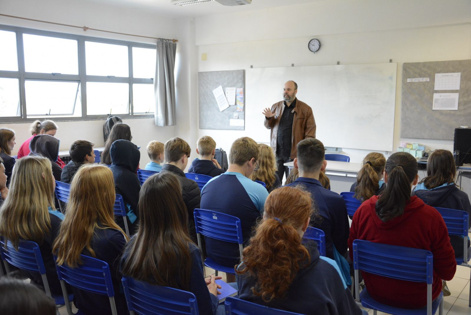 Além deste momento de conversa, os alunos participaram de demonstração de Circuito de Robótica, uma oportunidade concedida através de parceria com as escolas do SESI do Rio Grande do Sul. A curiosidade falou alto e os estudantes puderam vivenciar, de perto, o funcionamento de robôs, alguns que, inclusive, já participaram de competições nacionais.