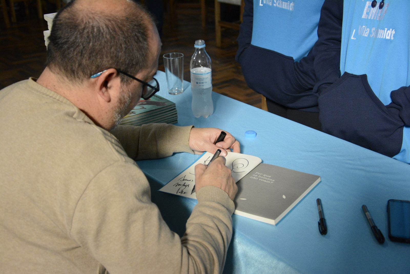 Durante o dia, os estudantes da rede municipal de ensino participaram de conversa com os escritores Pablo Morenno e Christian David, que tiveram seus livros trabalhados em sala de aula. Foram momentos especiais de troca e esclarecimento de dúvidas sobre a profissão de escritor, inspirações e realizações.