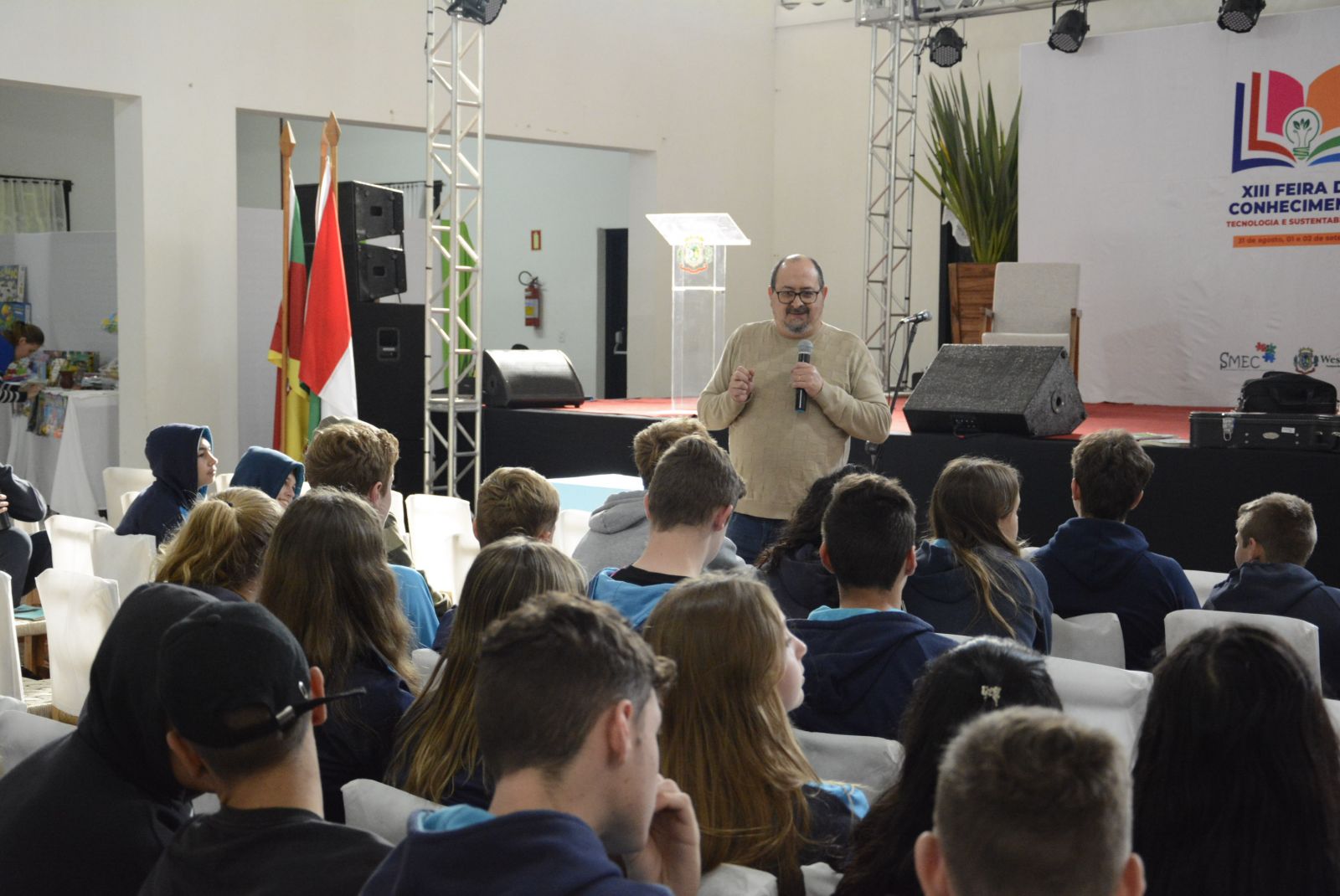 A segunda noite da XIII Feira do Conhecimento de Westfália foi de desafio e superação para 17 estudantes de 6º a 9º Ano da Escola Municipal de Ensino Fundamental (EMEF) Vila Schmidt. Nesta quinta-feira, dia 1º de setembro, a programação foi marcada pela reedição do Concurso de Oratória e promoção, de forma inédita, do Concurso de Poesia, os quais tiveram como temática “Tecnologia a favor da sustentabilidade”.