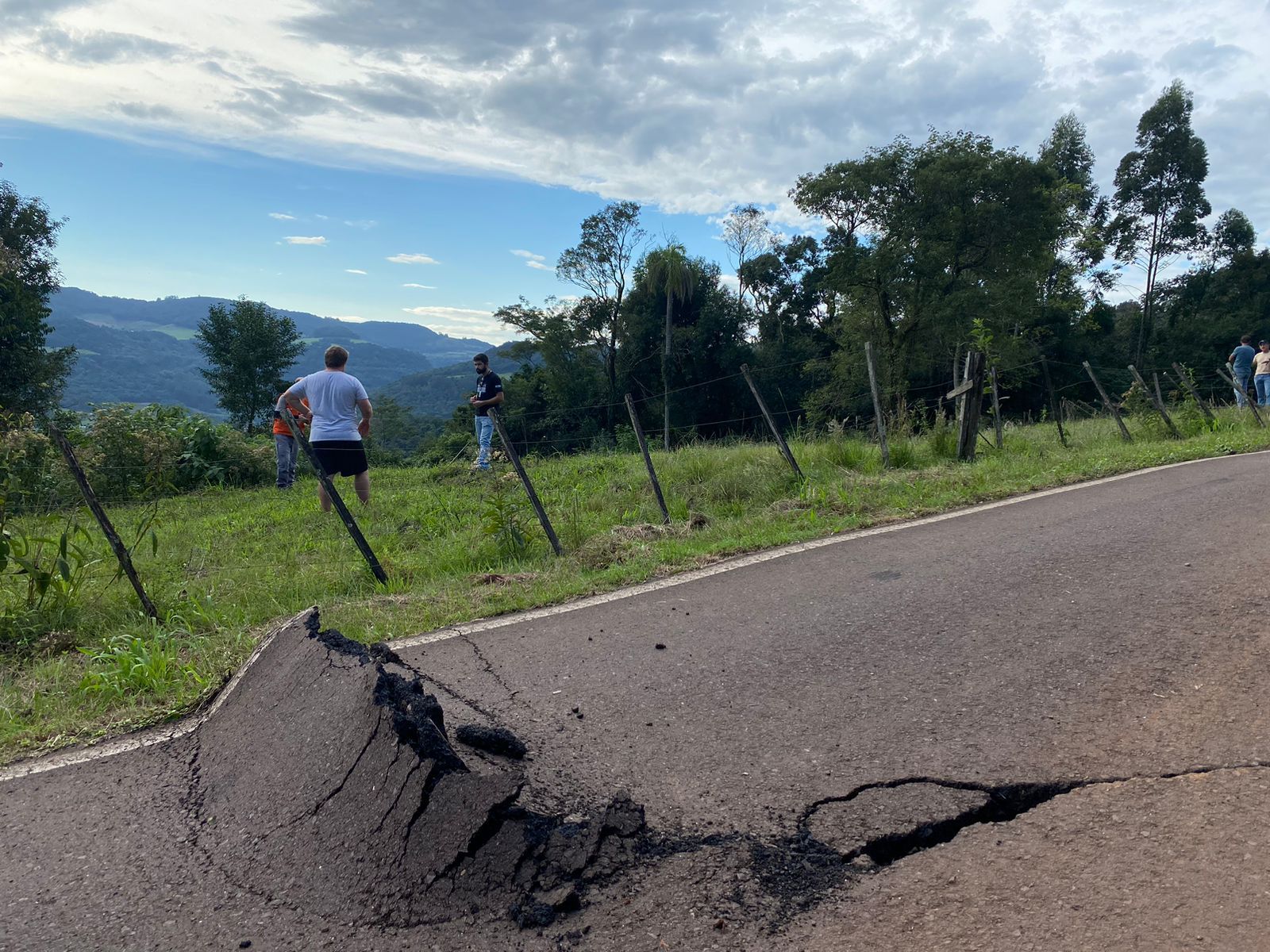 Importante reforçar que o acesso à Linha Paissandu pelo Centro segue interditado em virtude de rachaduras na via e entorno, além de deslizamento próximo. A rota alternativa é a RSC-453 (Rota do Sol) e a Picada Horst. Ainda não há previsão de liberação da Estrada Geral para o fluxo de veículos.