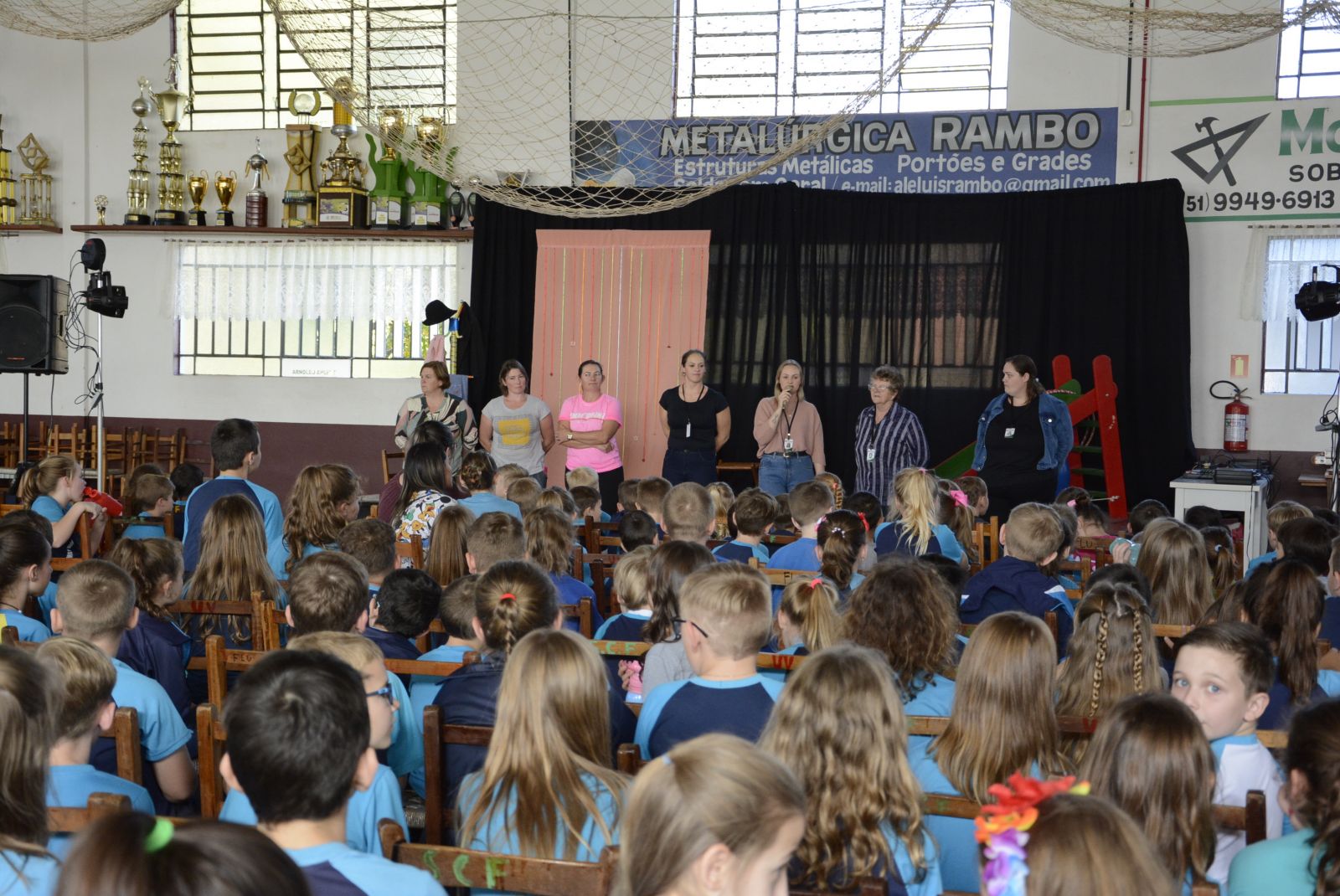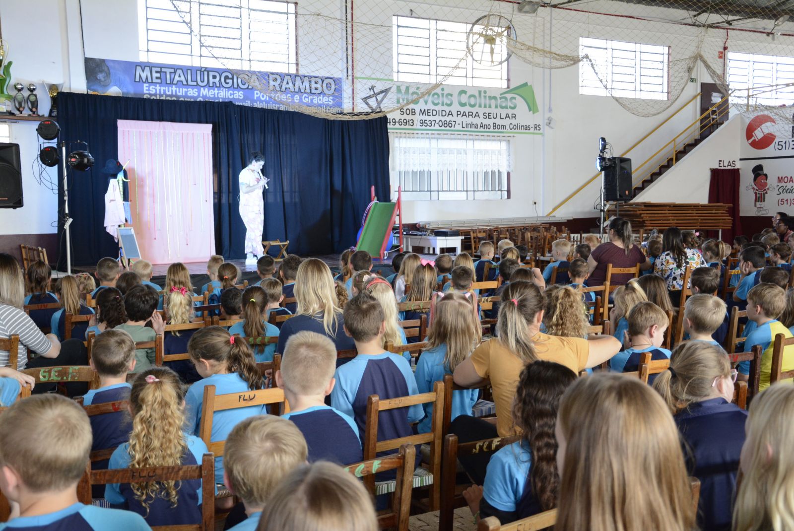 Pela manhã, as conselheiras tutelares conversaram com estudantes do 6º ao 9º Ano do Ensino Fundamental sobre a temática e distribuíram flyers. Já à tarde, crianças do Pré A ao 5º Ano assistiram, na Associação Cultural e Esportiva Fluminense, a peça teatral “O Silêncio de Aninha”, de Menegazzo Teatros, e receberam tabloide informativo.