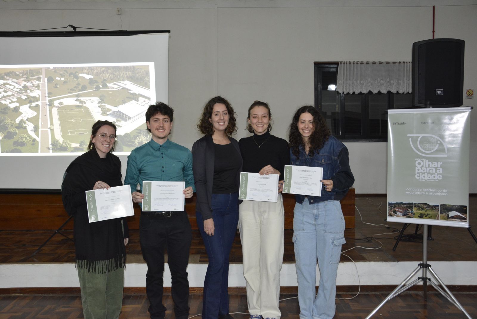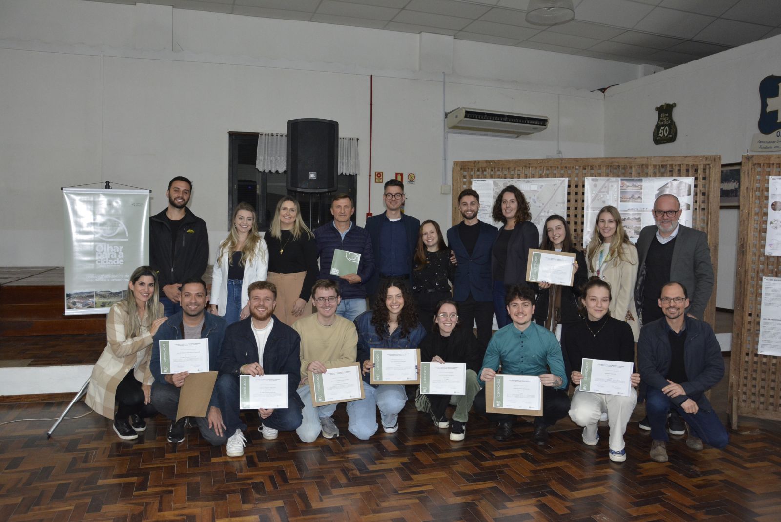 Com o objetivo de incentivar a valorização do espaço público urbano, além de visar a promoção do turismo e dos potenciais de desenvolvimento econômico sustentável, e ampliar a qualidade de vida da comunidade por meio de instrumentos de planejamento, uma parceria entre a Prefeitura de Westfália e o Escritório Modelo de Arquitetura e Urbanismo da Univates permitiu a realização do concurso “Olhar para a cidade – edição Westfália”. O projeto chegou ao fim na noite de segunda-feira, dia 10 de julho, com a cerimônia de premiação das propostas vencedoras, tendo por local a Casa da OASE, no Bairro Germânia.