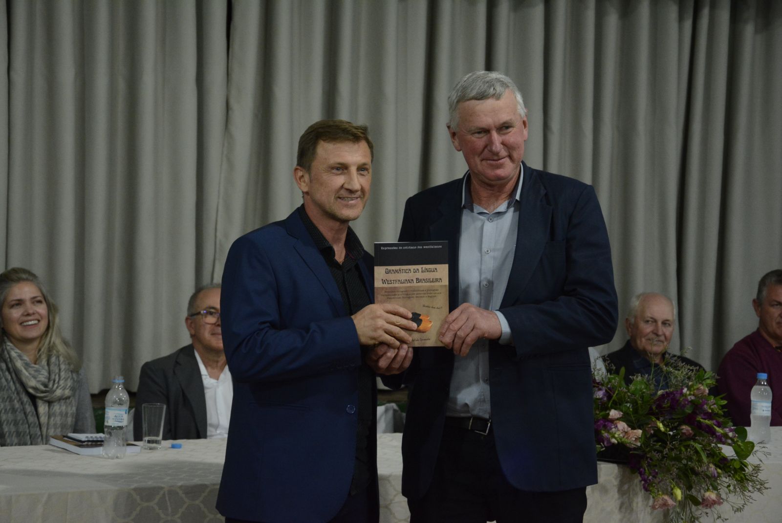 Já o prefeito de Westfália, Joacir Antônio Docena, enalteceu a parceria do poder público com o grupo voluntário. “Sempre fomos e sempre seremos parceiros de projetos culturais que resgatem a herança deixada pelos antepassados como forma de deixa-la viva às próximas gerações. E, neste sentido, quero também deixar este momento marcado pela entrega de cópia da segunda impressão do Dicionário da Língua Westfaliana Brasileira”, pontuou.
