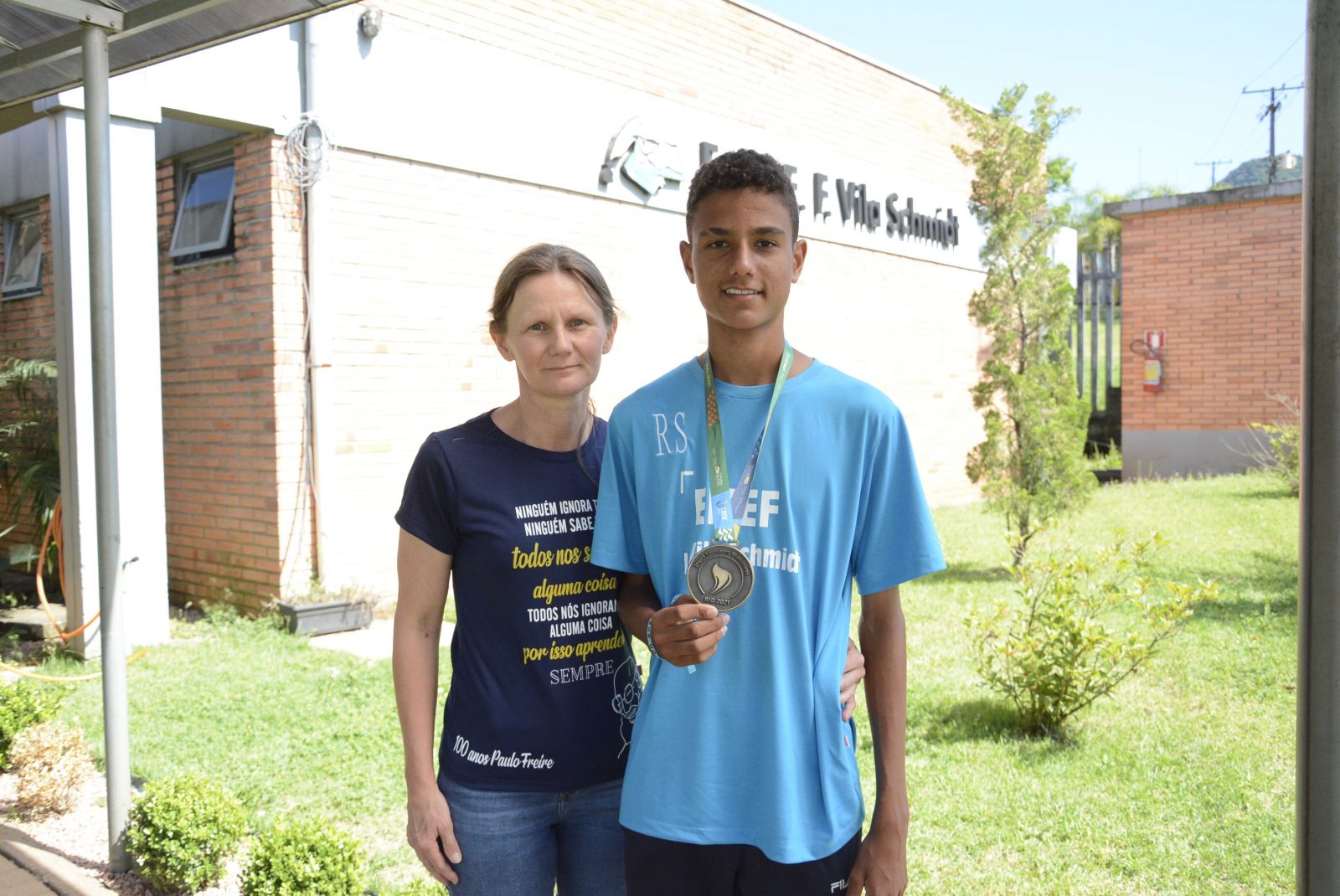 Estudante do 9º Ano da EMEF Vila Schmidt, Matheus Bloemker Carvalho, de 14 anos, não esconde a alegria com a medalha dourada na sua primeira competição nacional. “Foi uma oportunidade muito boa para mim. Não teria conseguido ir lá sem a ajuda dos meus professores, amigos e família. Todos me apoiaram muito. Estou muito feliz”, revela o atleta westfaliano.