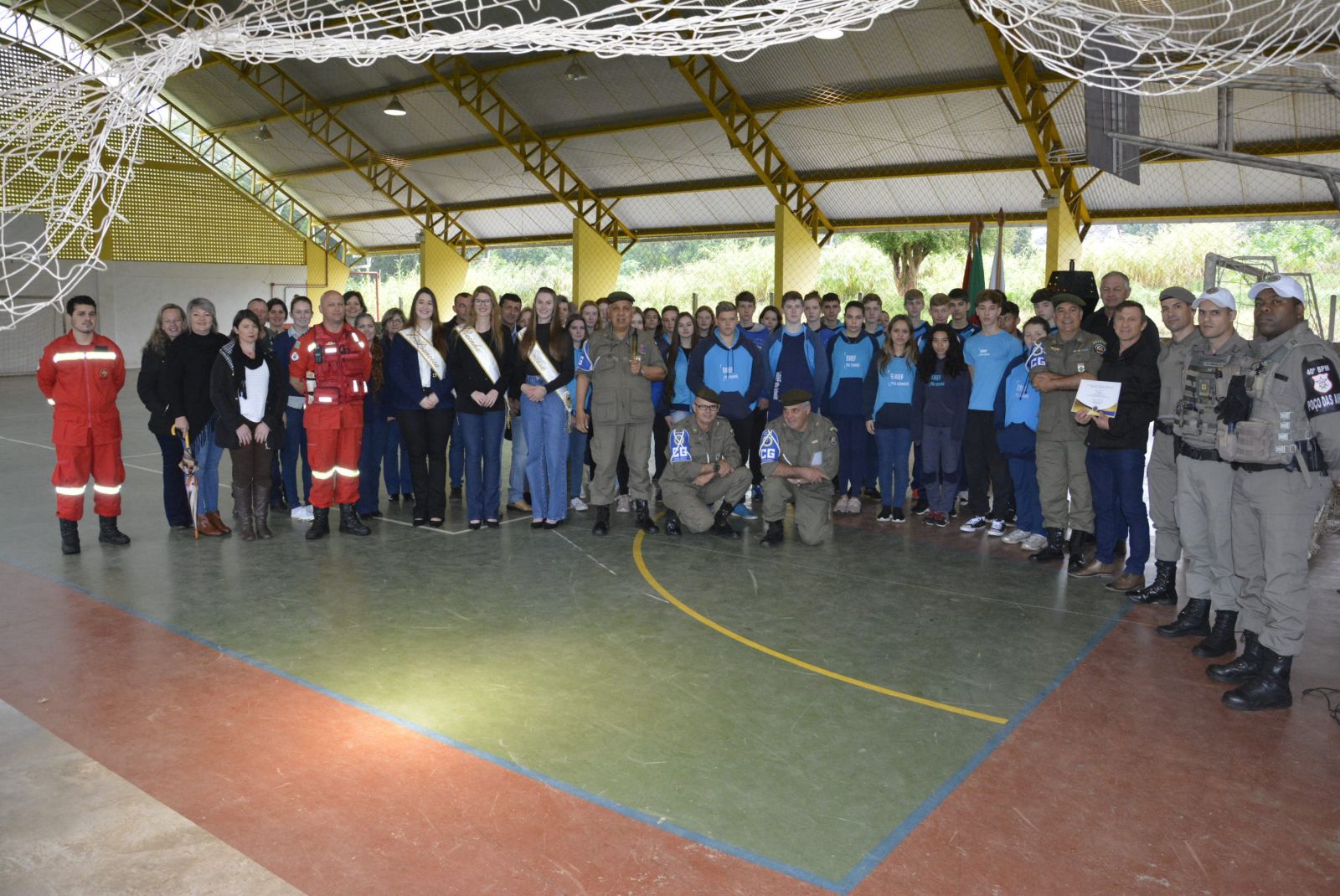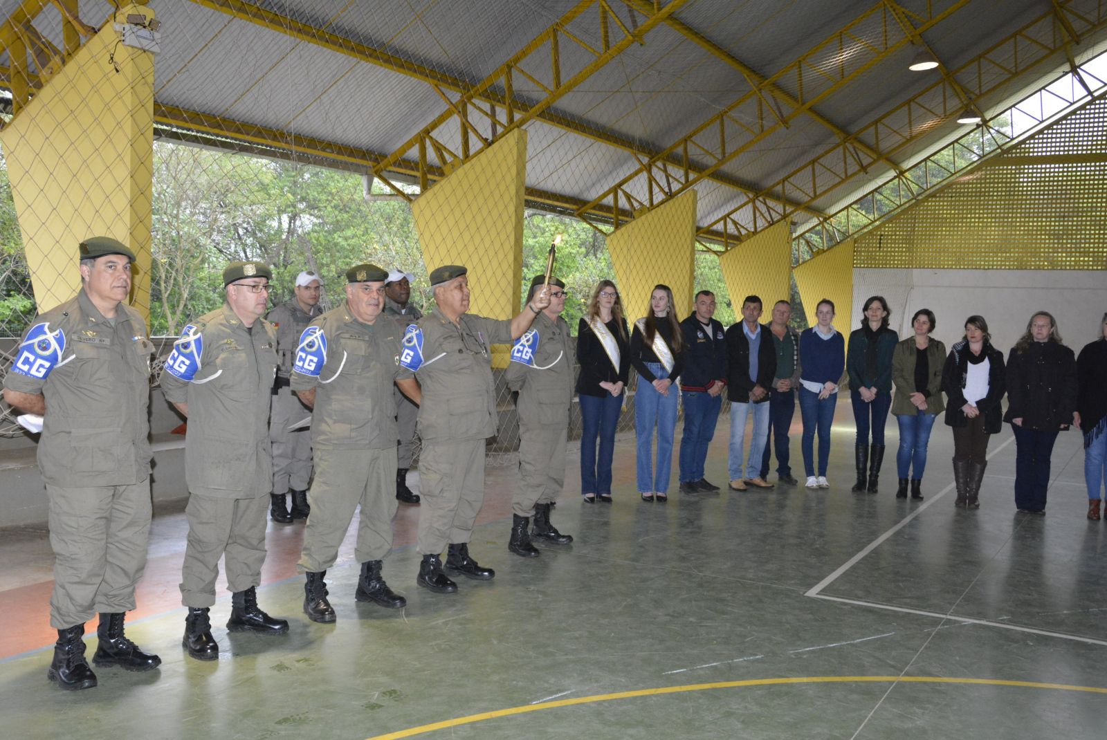 Secretários, coordenadores, vereadores, soberanas, professores e estudantes acompanharam a solenidade de recebimento do fogo simbólico, que contou com canto dos hinos Nacional e Rio-Grandense, além de pronunciamento de autoridades e entrega de certificado ao Município pela participação na ação cultural. A pira municipal foi acesa pelo prefeito de Westfália, em ato conduzido pela Associação dos Veteranos e Amigos da 1ª Companhia de Guardas.