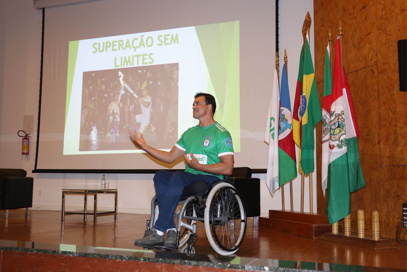 Natural de Santa Maria, Denilson Souza foi atração especial na abertura dos Jogos Escolares Intermunicipais, compartilhando suas vivências e experiências com o público presente. Militar do exército na reserva, palestrante, idealizador da Campanha Paratleta (coleta de tampinhas, lacres de alumínio e blisters) e presidente da Associação Santamariense Paradesportiva (Assampar), Souza sofreu uma queda do telhado em outubro de 2006, fraturando a coluna e, desde então, faz uso da cadeira de rodas para se locomover.
