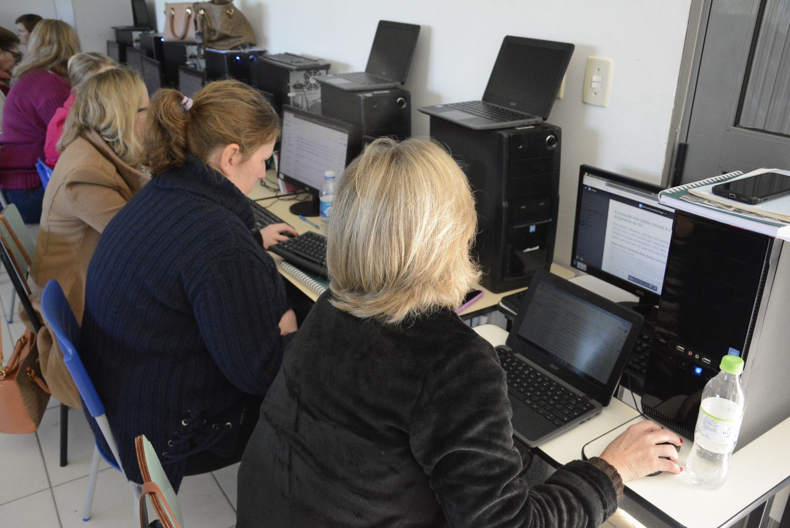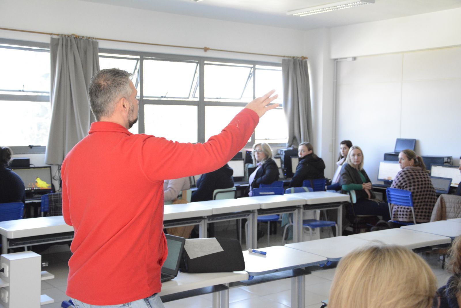 Num primeiro momento, logo no início da tarde, professores dos anos iniciais do Ensino Fundamental tiveram uma troca de experiências sobre informática. Na ocasião, o professor Gustavo Sieben, coordenador da formação, tratou sobre a utilização de plataformas digitais para o planejamento escolar, bem como da adesão do quadro pedagógico ao uso de Chromebooks, equipamentos adquiridos pela municipalidade.