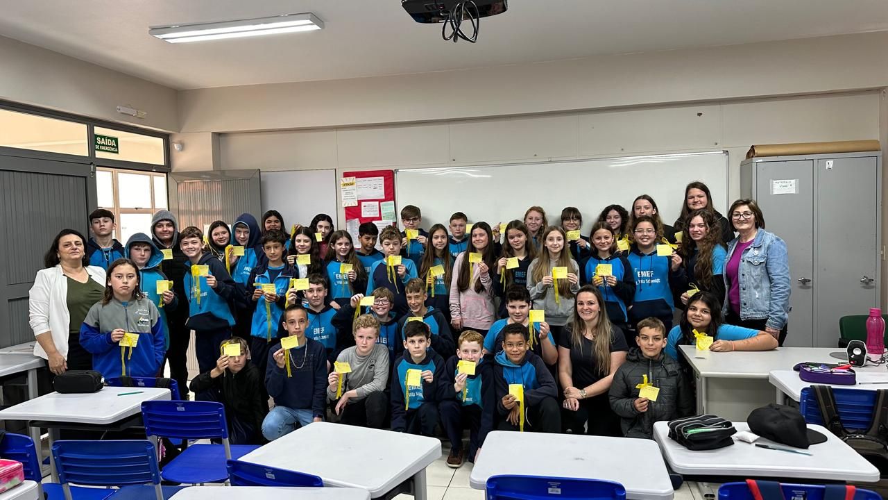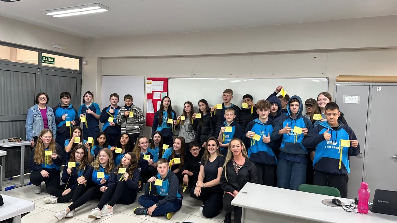 Em alusão ao Setembro Amarelo, campanha de conscientização sobre a prevenção ao suicídio, a Equipe Multidisciplinar da Secretaria de Educação, Cultura, Turismo e Desporto (SMEC) de Westfália promoveu uma ação especial voltada aos alunos do 6º ao 9º Ano da Escola Municipal de Ensino Fundamental (EMEF) Vila Schmidt. A atividade, realizada em parceria com as aulas de Ensino Religioso, teve como objetivo incentivar a reflexão e a promoção à vida, abordando a importância do diálogo sobre o tema.
