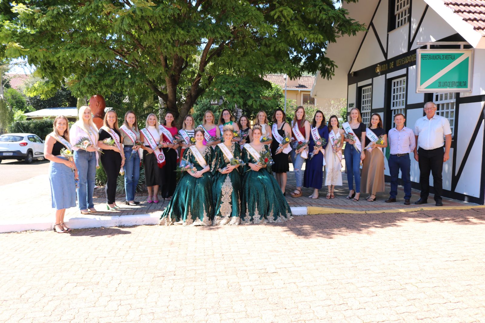 Ao final, os presentes ainda puderam prestigiar o memorial das soberanas de Westfália, com exposição de vestidos, coroas e quadros das oito cortes que fazem parte da história do Município. Em momento especial, houve homenagem às cortes e dinâmica, oportunizando resgatar memórias afetivas e lembranças enquanto soberanas de Westfália.