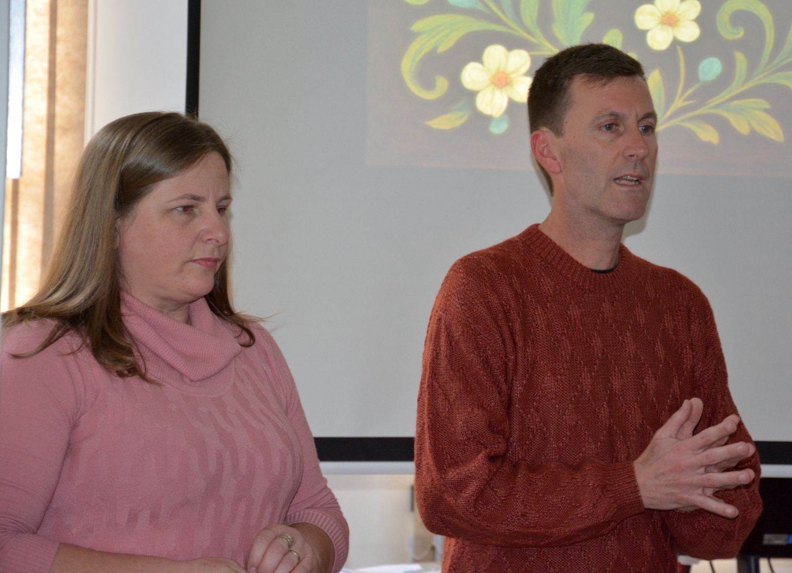 Prefeito César Juliano Bloemker (d) e vice-prefeita Simone Landmeier, que preside a comissão organizadora